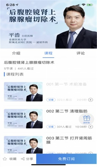 1、在线学习不同医学领域的课程资源。2、观看手术视频,支持音量与进度的调整。