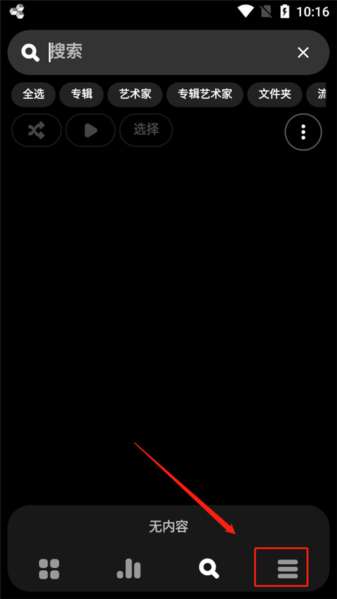 1、这里是poweramp的主界面,你可以在这里完成滑动切换曲目、滑动更多次切换分类等操作,你还可以通过滑动或者点击来显示当前分类。