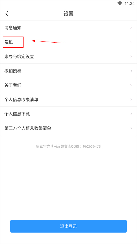 2、然后点击【隐私】;