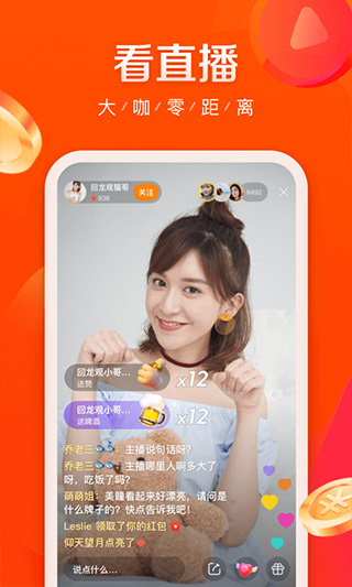 主播就在眼前,与你热力互动。直播间PK新玩法频出,即时对战刺激好看,谁赢由你说了算,更有主播不定时壕气发红包呦。