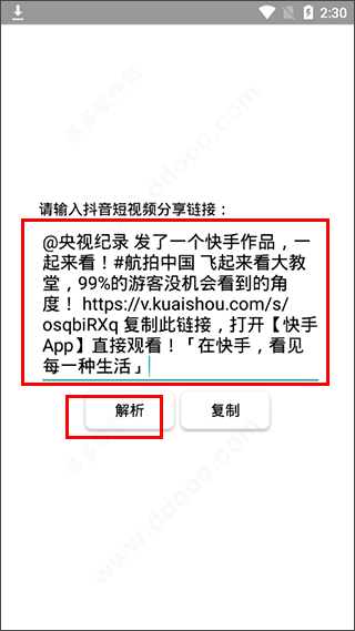 3、接着直接将链接复制到软件的输入框中,点击解析;