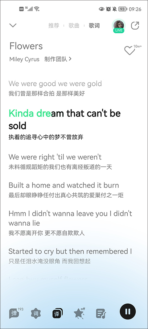 5、翻译歌词,支持数十万首热门英日韩泰歌曲的汉译音译。