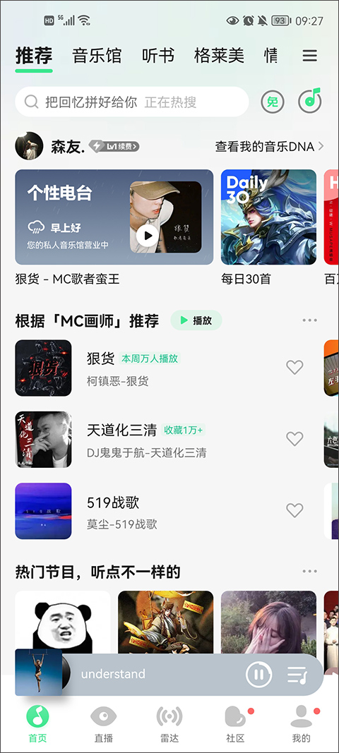 6、个性化推荐,全站依你的口味定制专属音乐内容。