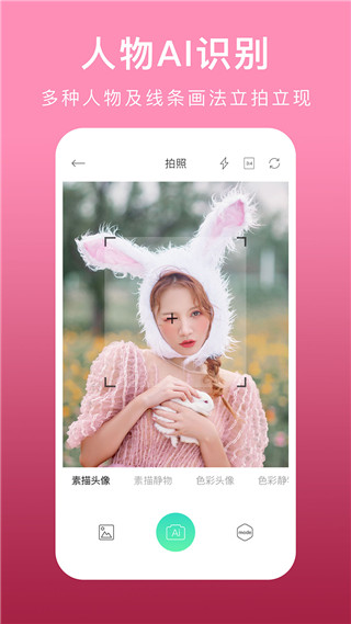 1、美术拍app为用户提供大量绘图玩法,方便用户通过软件轻松拍出绘画效果,简单又好玩;2、具备普通相机软件的基础功能,包括人物素描,静物素描,色彩头像,静物色彩;