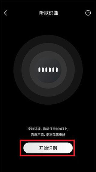 4、接下来会进入到听歌识曲功能,点击【开始识别】即可播放或者自己唱歌曲。