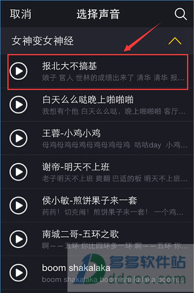 看见点击声音库了吗?你可以去选择自己喜欢的声音,在声音库里有着超多丰富搞笑的声音分类,总有一款适合你,点击其中一类女神变女神经病,就有着大量的声音,其它的可以适当选择。