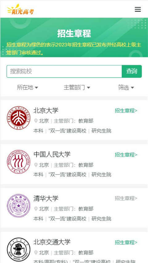 1、按学校、按分数、按位次、多种方式阳光高考让你想怎么查就怎么查。