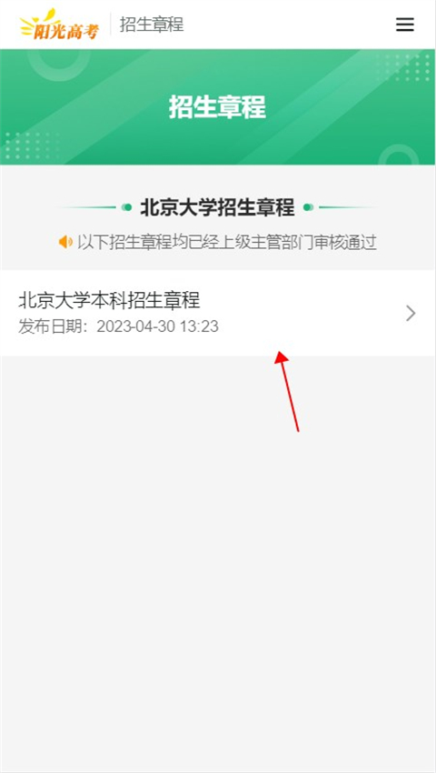 4、在跳转的界面可以看到北京大学的本科招生章程,点击进入。