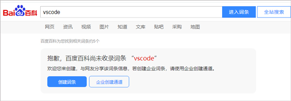 1、在你创建一个词条之前,你应该首先在手机浏览器中以百度账号打开并登录百度百科,在百度百科里搜索一下这个词条,以及它的别名、简称等等,也许这个词条已经被收录了,只是它的名字跟你知道的不一样。例如下图在百度百科中搜索“vscode”显示该词条没有被创建但是有全称。
