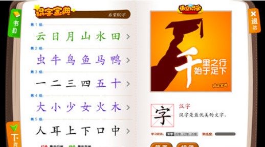 二、识字宝典,您可以通过识字宝典手动教孩子复习,识字宝典每6字为一组,每组对应4个游戏;