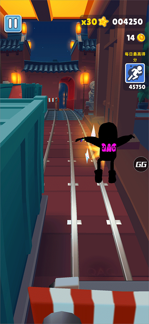 在地铁跑酷游戏中,刚开始玩家将会出现在地铁铁轨上,由于贪玩导致被暴躁的警卫和狗子的持续追捕,在奔跑的过程中,玩家会在沿途拾取金币、钥匙、道具等物品,同时需要躲避前方列车和其他物体的障碍,还可以跳上列车顶部,使用滑板来躲避抓捕,直到玩家撞上障碍物,或者被列车撞到,被警卫抓住,游戏就会结束,可玩性极强。