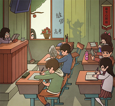 其实这就是一个班级的感觉,他们都在努力学习,准备高考呢!然后我们的任务就是让他们学的更多,可以有更多的学生考上好的大学。这就是咱们玩这个游戏的最终奥义所在,所以努力着吧!