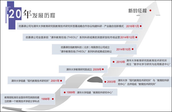 优慕课在线教育科技(北京)有限责任公司是国家高新技术企业,公司于2014年底由原清华大学教育技术研究所数字化学习研究与应用中心改制成立 ,“清华教育在线”系列科研成果和技术支持团队转入公司。目前公司已经拥有多项自主知识产权软件产品。公司团队已历经18年数字化学习平台和教学管理系统的研究、设计、开发、应用、评价历程,参与500余所院校教育信息化项目建设,对促进院校教学改革起到了重要推动作用。清华大学教育技术研究所是清华大学事业单位,承担教育技术学的学科建设和研究生培养工作。研究所经过20余年的发展,在学科建设方面拥有硕士、博士、博士后的培养平台,是国内院校数字校园应用软件研究与开发的杰出团队之一,研究成果在国内外有一定影响力和知名度。研究所研发的“清华教育在线”系列平台软件在国内院校得到良好应用,并具有更大的品质提升意义和应用前景。