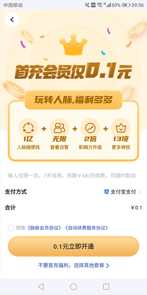您开通自动续费功能后,您的脉脉帐号将与您指定的第三方支付账户绑定。