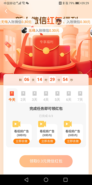 如果用户提现金额没有达标,会提现用户通过继续看视频或做任务来进行达标提现