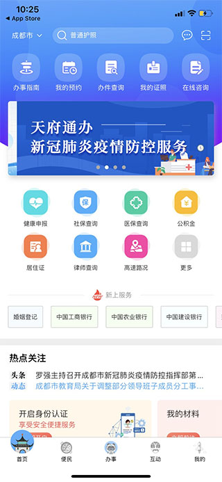 1、下载安装好天府通办app后,进入软件首页,在此可以查看一些热门常用服务、常用查询的入口;