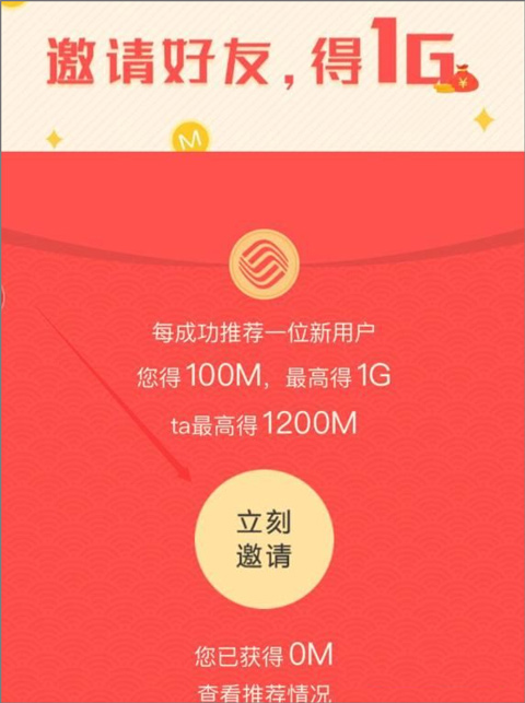 2、用户需要通过微信、QQ等方式邀请您的好友下载四川移动掌厅App即可获得100M流量,您每邀请一位好友下载并登录该软件都可获得100M流量;