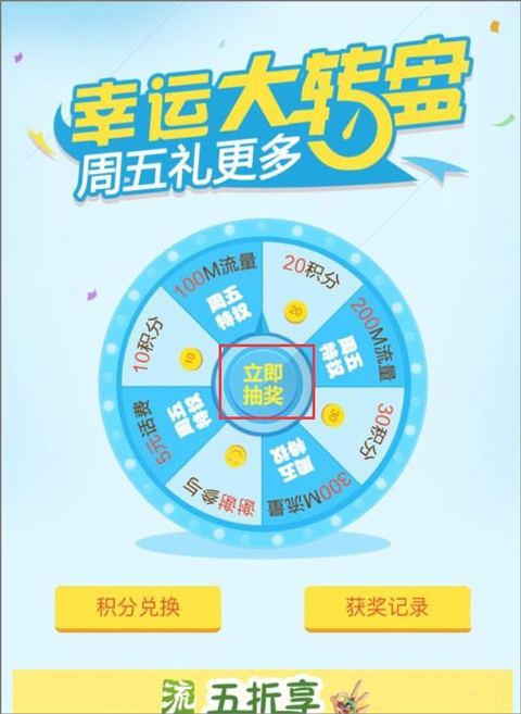4、点击大转盘中间的“立即抽奖”按钮,就有机会获得积分、话费、流量;