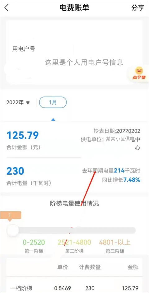 点击上图红色区域的时间后,就可以查看到历史时间的用电金额和用电量了