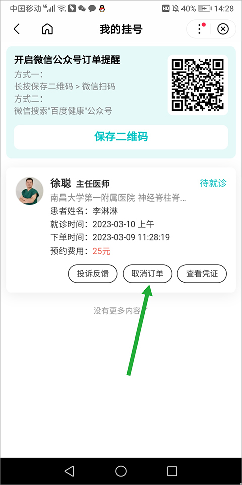 用户可以前往百度app中的【我的】页面中点击【订单】(下图绿色箭头所指)