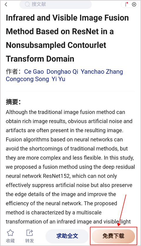 1、首先选择一篇文献,点击右下方的“免费下载”选择一个来源。