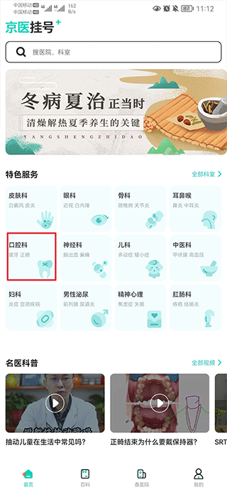 一、打开北京医院挂号通app,在首页中选择你要挂号的科室,如口腔科
