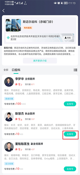三、进入后,选择你要挂号的医师,并点击去挂号