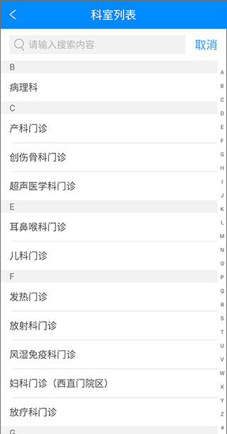 5、在【科室列表】中选择对应的科室,该页面支持内容搜索。