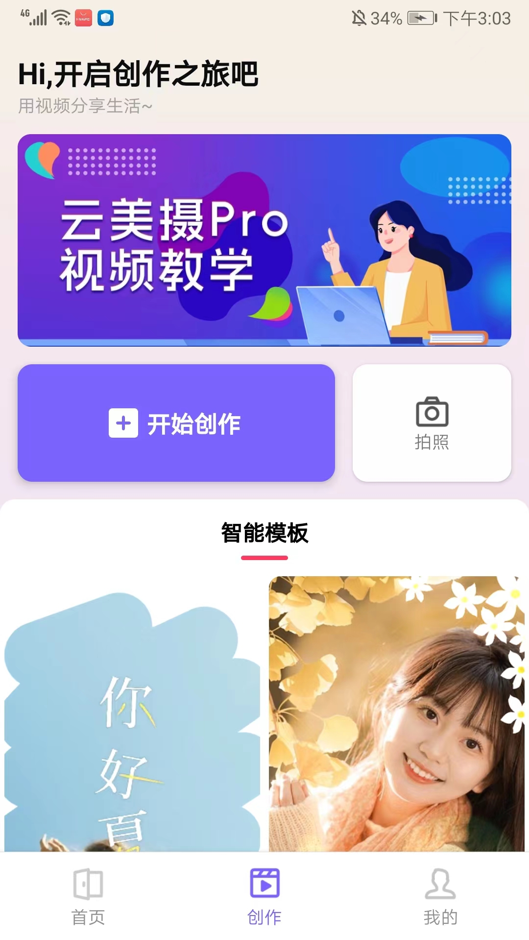 1、打开云美摄pro官方版,在创作界面选择【开始创作】选项,