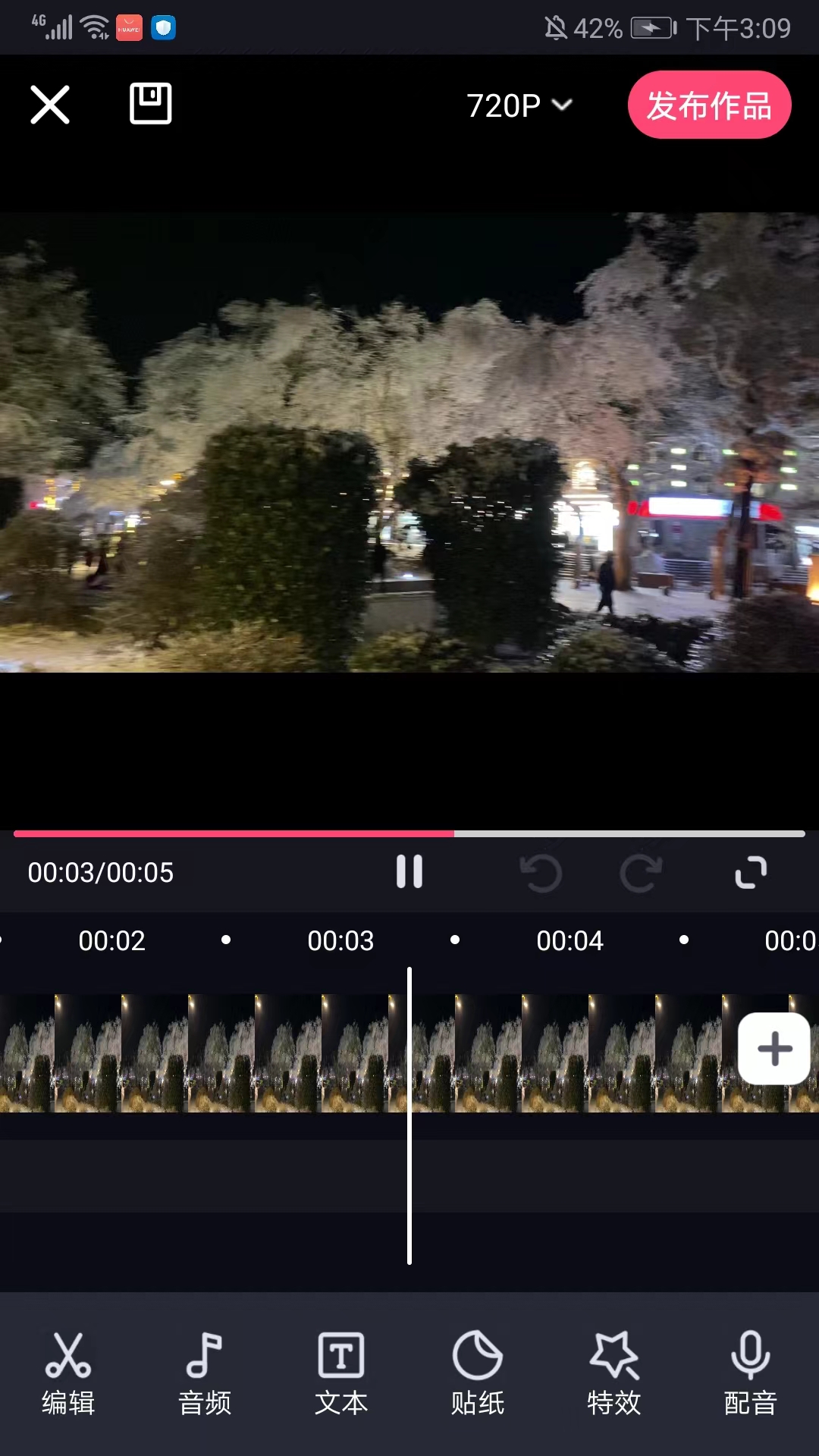 4、在发布前,我们可以通过下方的文本、贴纸、特效、配音、背景等水印等功能选项进行视频的编辑和美化,