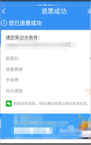 6、然后就成功退票了,退回的金额会返回到原来的支付渠道,就是你当时怎么付的钱,还是会退回到哪。