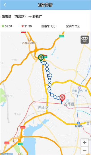 1、提供公交换乘查询服务;公交线路票制、票价、运营时间等运营信息。2、提供昆明市地面公共交通线路的公交车到站距离、到站时间等实时预报服务。