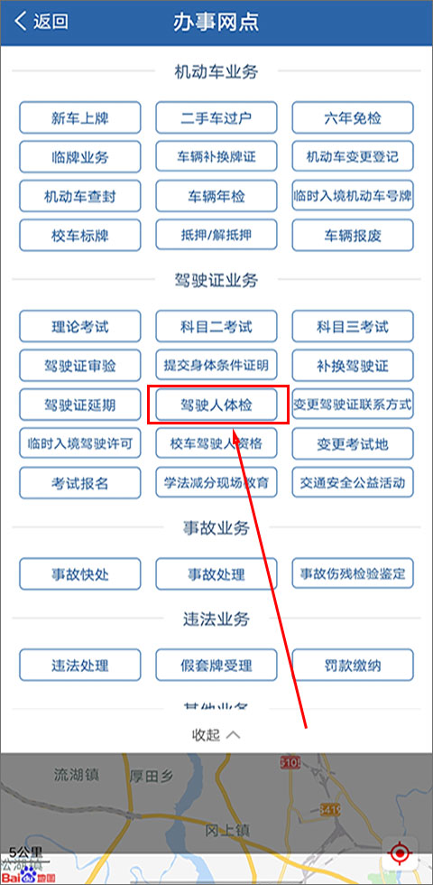 选择更多,在弹出的业务服务中选择“驾驶人体检”进入;