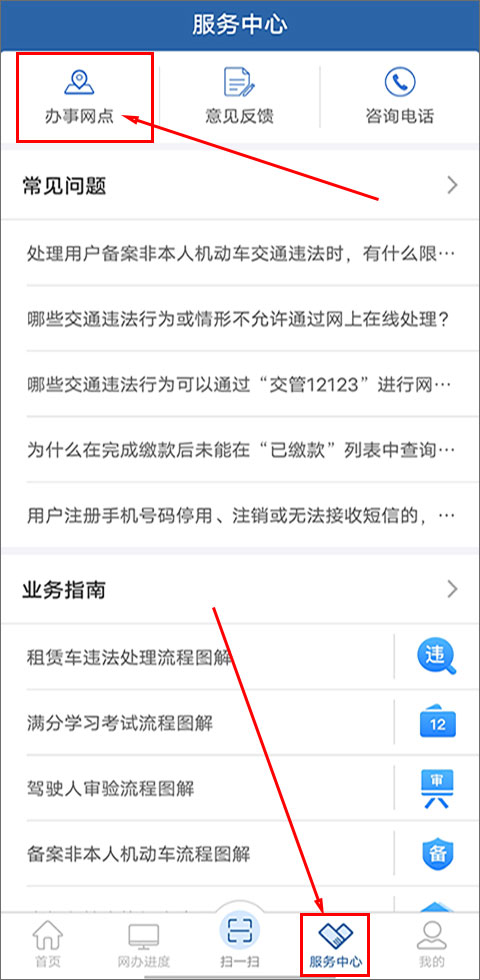 除参照此表之外,驾驶人如需到联网机动车驾驶人体检医院进行体检,还可以通过打开“交管12123”app,点击首页下方“服务中心”栏目中的“办事网点”;