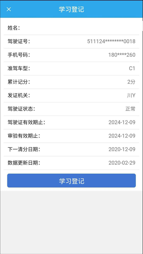 4、点击“学习登记”,查看个人信息。