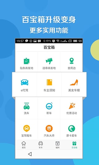 违章代缴、汽车报价、二手车买卖、附近加油站、停车场、实时路况随时查,洗车、租车、保养、代驾服务应有尽有,更全的汽车资讯一手掌握。