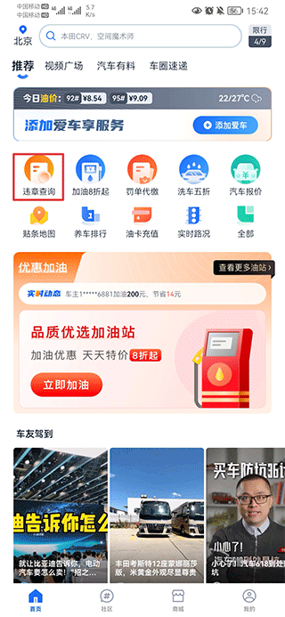 一、打开汽车之家车主版app,在首页中点击违章查询