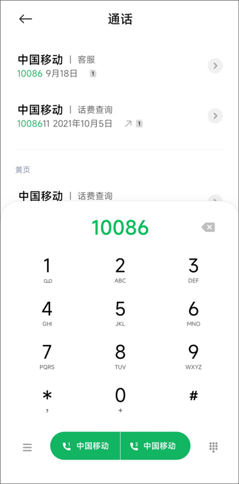 4、点击10086电话客服则跳转至通话页面,用户可拨打10086咨询客服;