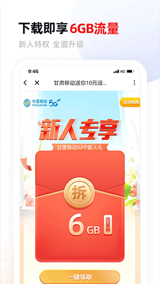 随着通信网络的发展,数据流量更是越发快速,而流量也成了现在大多数人手机套餐内不可或缺的一部分,尤其是一些喜欢用手机看电影、电视剧的人,一不小心可能流量就超标了,那就需要办套餐或买流量包,而流量的套餐变更现已能在网上办理,所以小编特意带来了甘肃移动app,这是由中国移动通信集团甘肃有限公司推出的一款手机移动通讯服务软件,已更名中国移动甘肃,它基于甘肃移动手机号码为用户们提供便捷的通讯、终端、甘肃特产以及生活服务。该软件能够为用户提供商城服务、通信服务、生活服务和各种优惠活动服务,然而作为一款手机移动服务软件,它能够为用户提供专业的通信服务,不在仅仅是局限于手机办理相关的通讯业务,用户通过软件还可以买手机、交话费、查账单、转套餐、办卡号、装宽带,各种自助操作,让您玩转4G;此外,甘肃移动app还有各种生活服务等您来体验,有需要的用户快来下载体验吧!