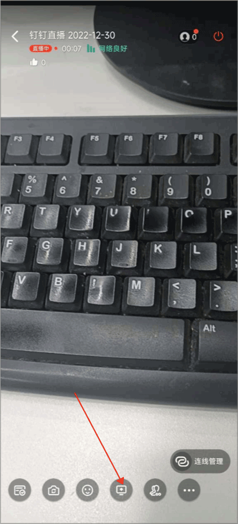 4、开始直播后,点击屏幕共享图标,如图所示。