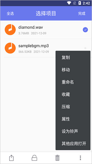 8、支持音乐格式:mp3、m4a、aac、amr、ogg、wav、ape、flac等12种;
