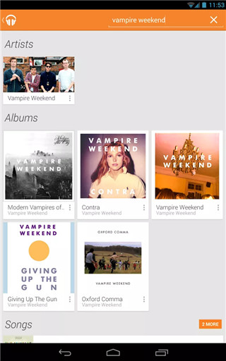 4、顶部的标签有艺术家,专辑,歌曲,播放列表。