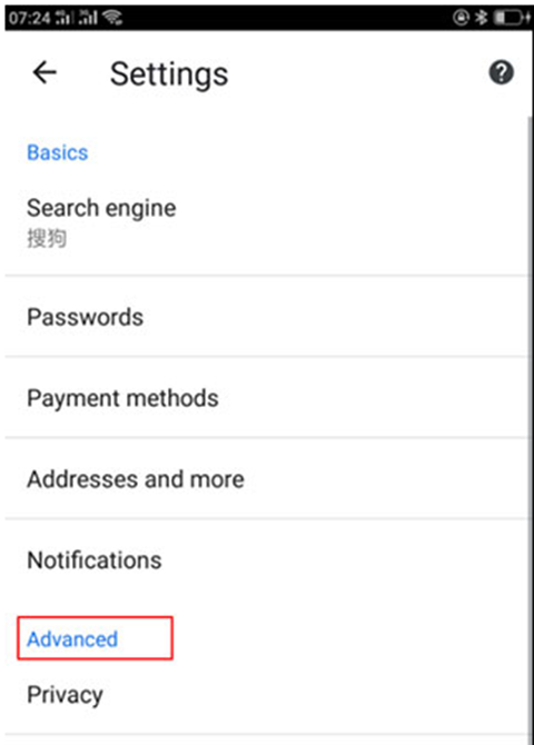 3、进入Settings设置界面,找到Advance模块