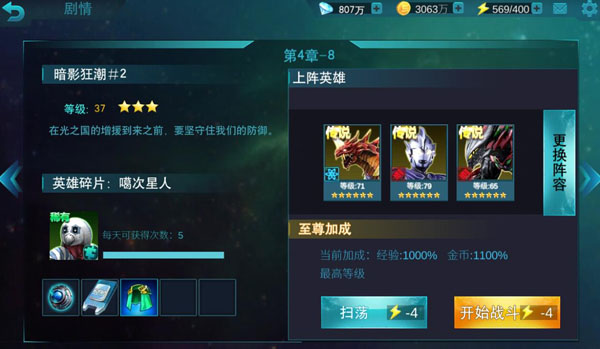 《奥特曼传奇英雄》第四章副本已经有不小的难度了,不少新手网友可能都会遇到打不过情况,这个时候就需要提升战斗力并搭配变身器技能才能够成功。