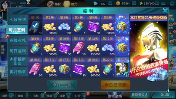 节日礼包,参与活动赢取永恒闪耀特利迦,七日福利传说奥特曼登陆即领,活跃赠礼得海量钻石,庆典兑换,参与领传说德凯奥特曼及限定道具。