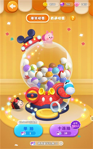 4、最后一个任务是挑战扭蛋关。在打败boss皮特后,该boss关就会转化为扭蛋关,挑战扭蛋关并达到扭蛋关相应的分数就可以获得米奇家族的扭蛋,召集新的伙伴啦。