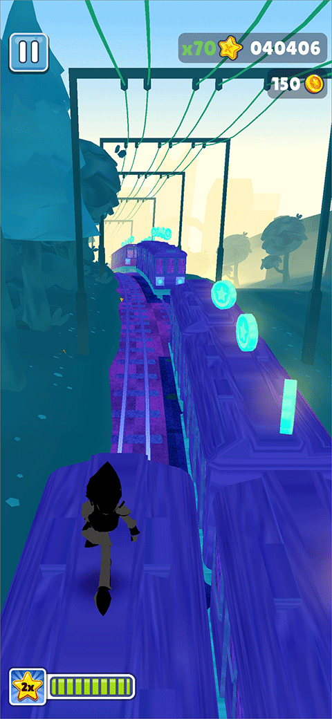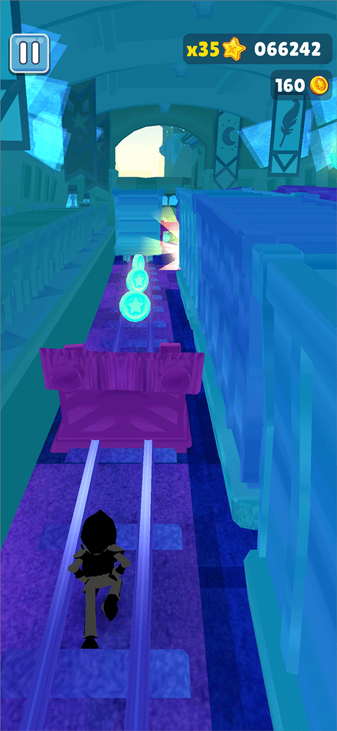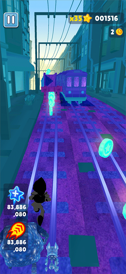 地铁跑酷Easft专属版本是一款由大神Easft根据地铁跑酷游戏改编而成的。在此版本中游戏内的画面以及角色都经过了重新制作,其画面主要以紫色调为主,金币也由原来的金色变成了亮蓝色,而且音乐也十分带感,可以让玩家在玩游戏时更加有激情。虽然游戏内做了很多的改变但其玩法模式还是一样的,玩家需要在轨道上奔跑,并通过跳跃、滑行等操作来躲避障碍物和追捕者的抓捕,同时也需要收集金币和道具来让自己获得更高的分数。