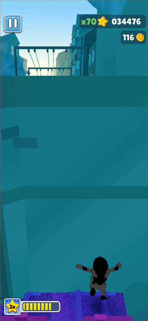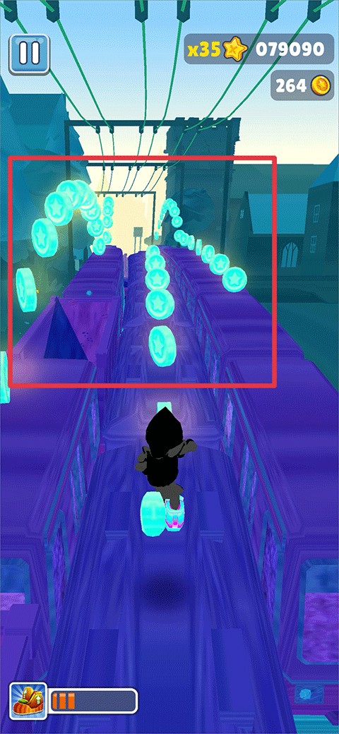 在地铁跑酷Easft定制版游戏中获得跳跃装备后,在上升到高空时快速↑↓↑的滑动屏幕来操作