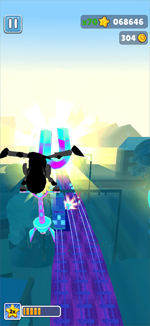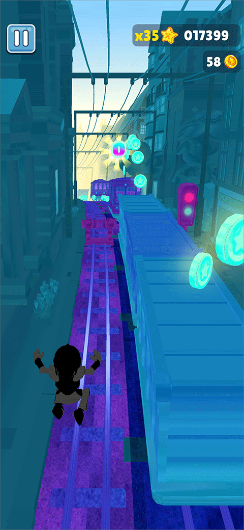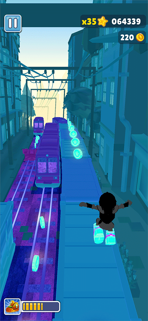 而为了让玩家更好的获得分数,地铁跑酷游戏中还提供了大量的道具,例如磁铁、双倍积分、滑板、飞行鞋等道具,玩家可以在奔跑的途中随机获取。有了道具的加入不仅为游戏增加了一定的趣味性,也为玩家带来了更加有趣的挑战性,感兴趣的小伙伴快来下载试试吧!