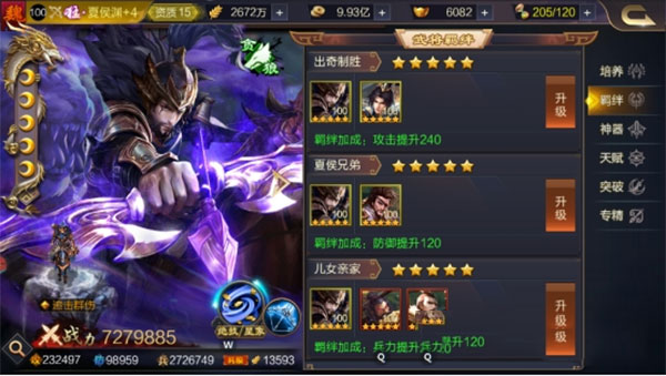 武将无疑是最主要的系统之一,游戏中有许多武将培养的系统,包含如下:武将基础属性,武将技能,兵种,星象,等级,进阶,突破,羁绊,神器,天赋,突破,专精,名将录等。
